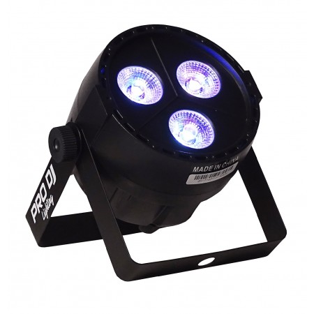 Par led para iluminación de escenarios, estructuras y arquitectura. 3 LED*5W RGBW-UV (5 EN 1) 20W modo: automático/ audio rítmico/ dmx/ master – Slave. 8 canales dmx. Angulo 25° Dimensiones: 14 x 14 x 14 CM Peso. 0.3 kg